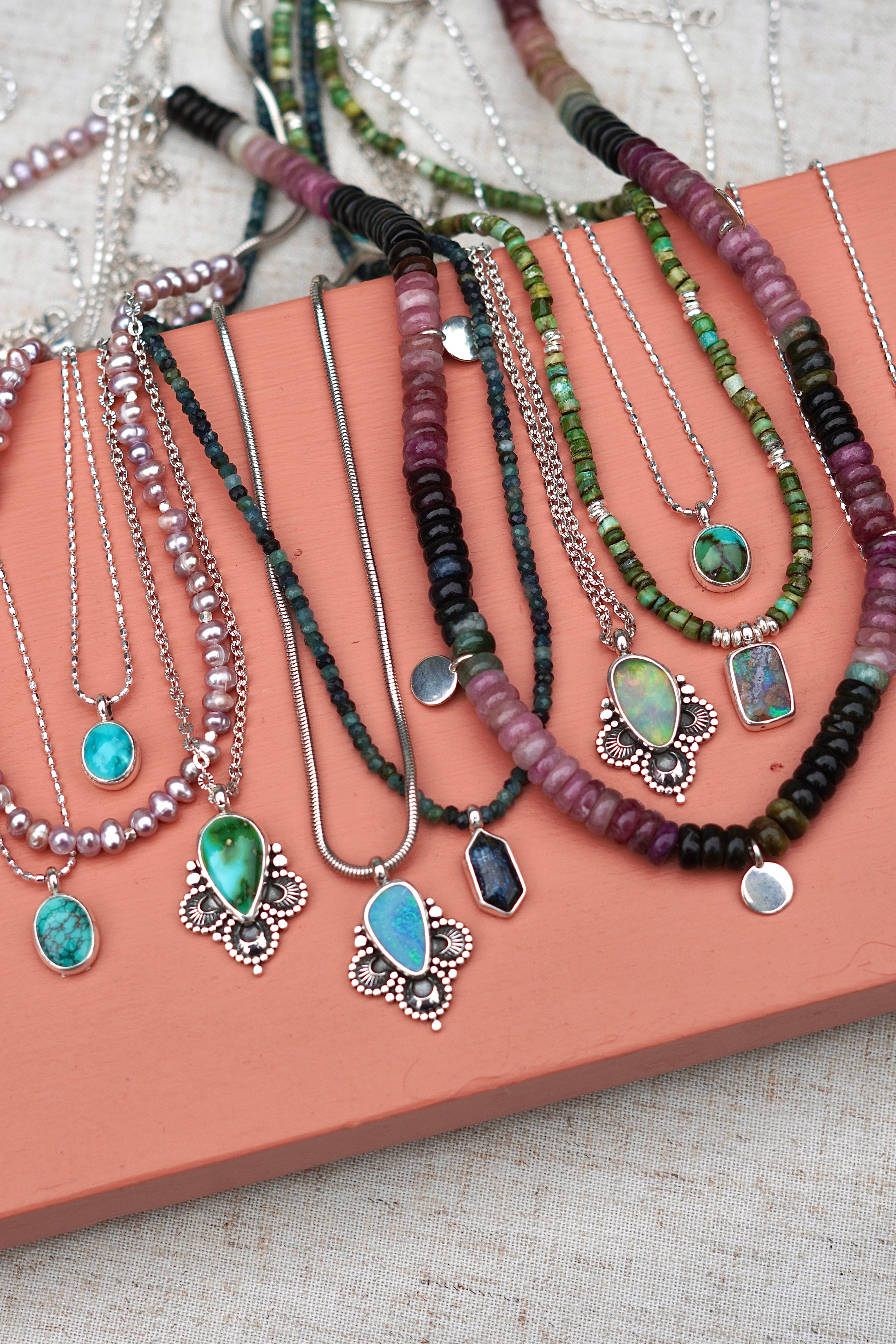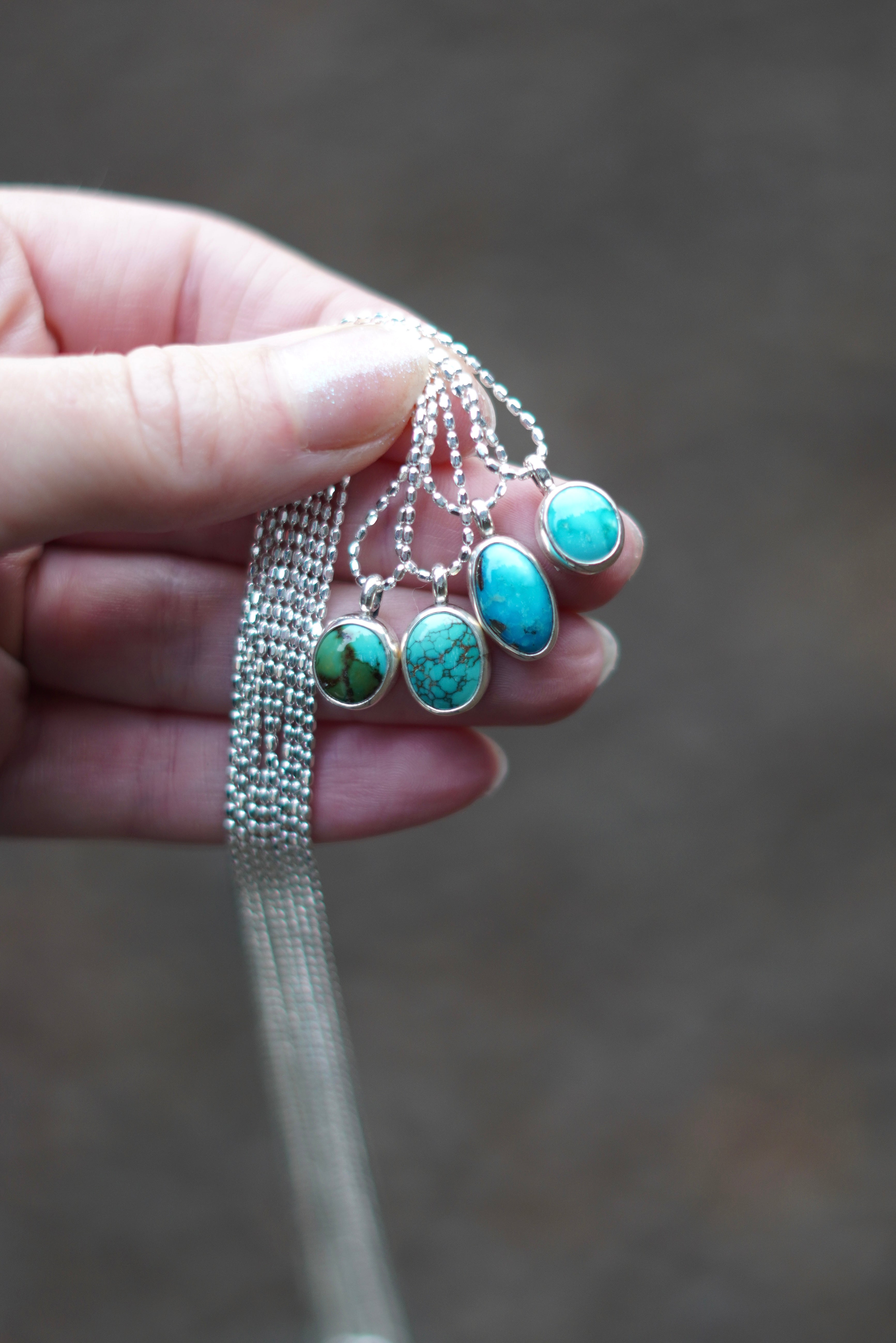 Gorgeous Turquoise stones on an 18 inch dainty beaded silver chain with lots of sparkle.