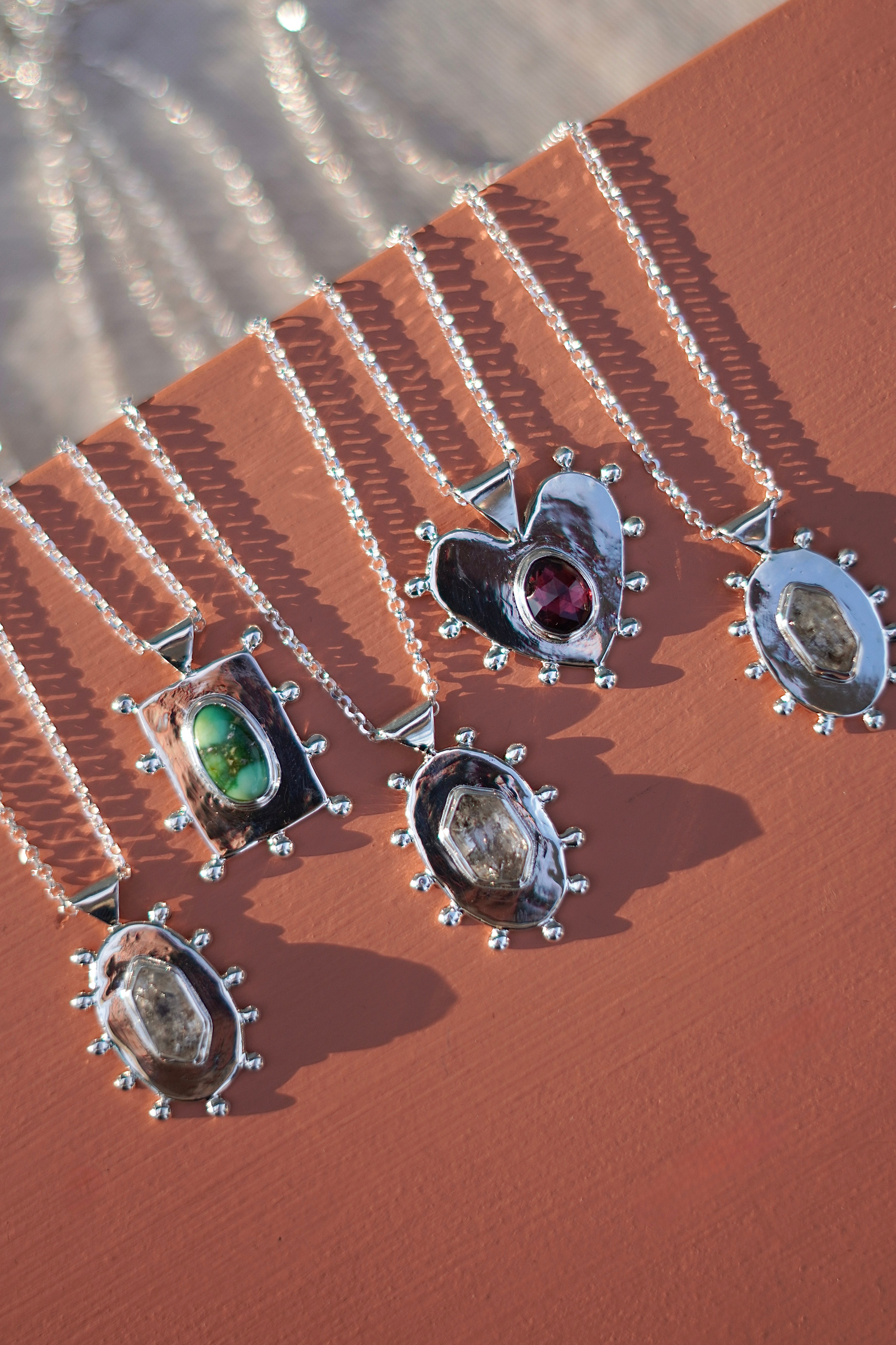 This necklace is made with reclaimed sterling silver, fine silver and a genuine stone.