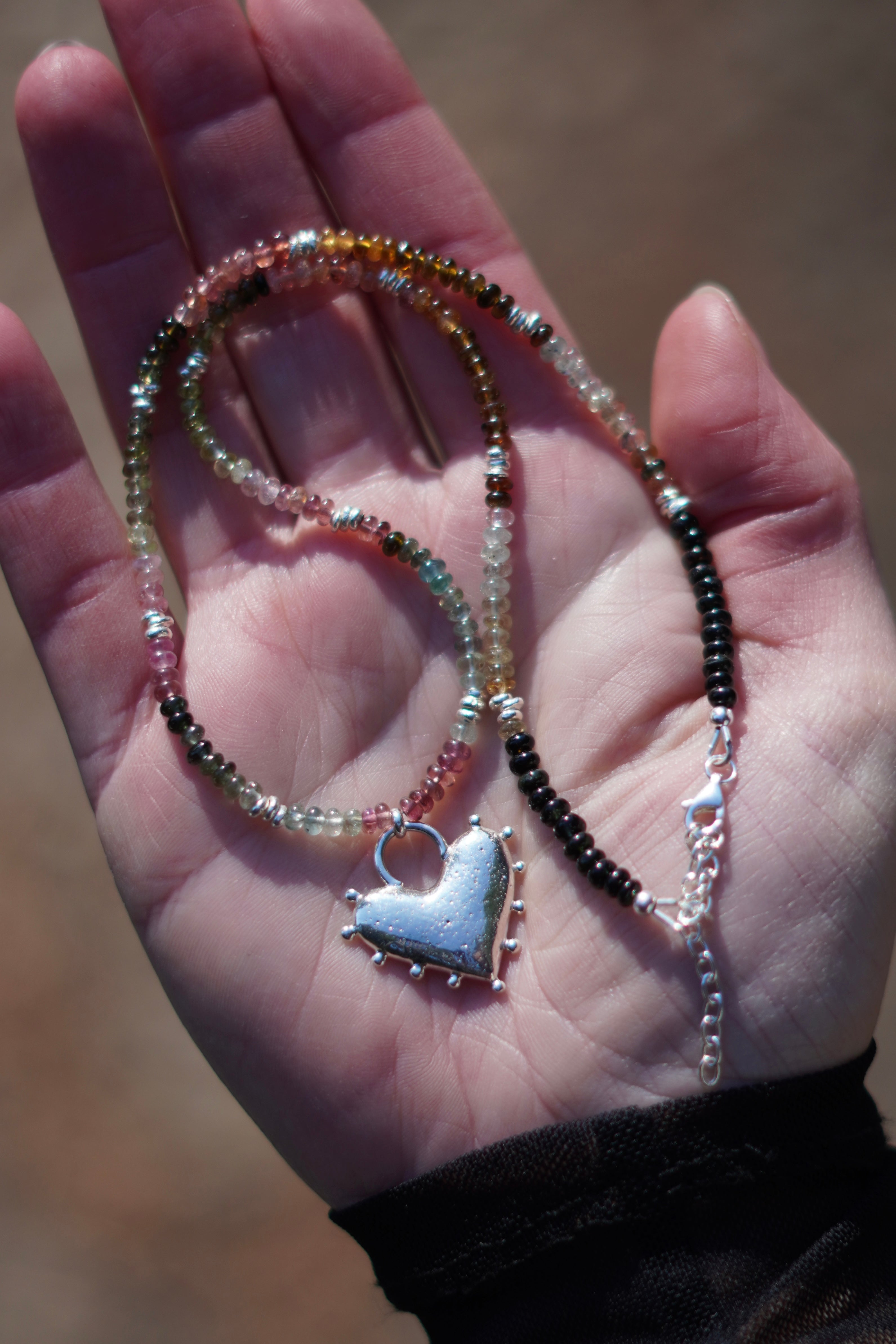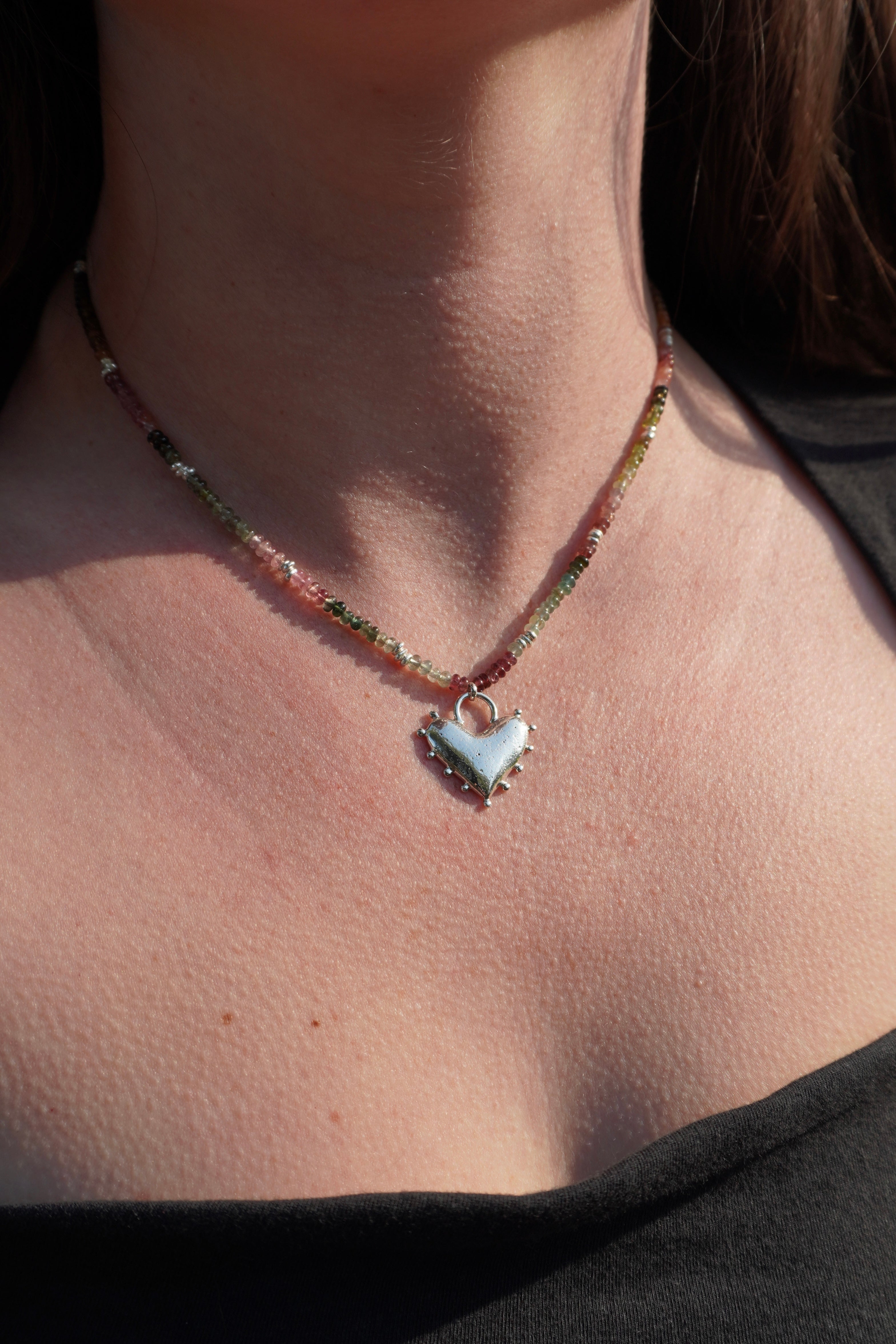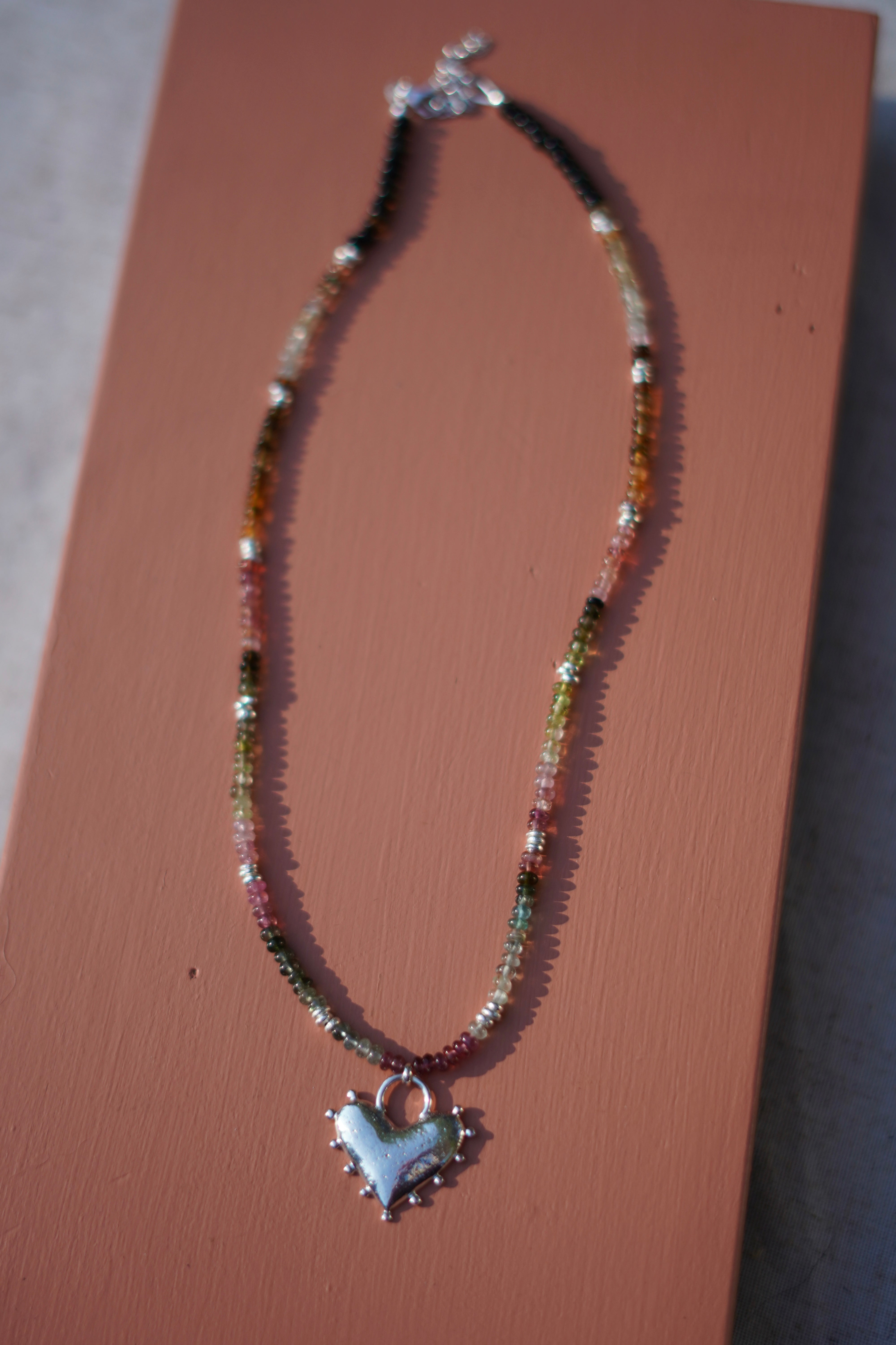 Tourmaline Beaded Necklace with Recycled Silver Heart