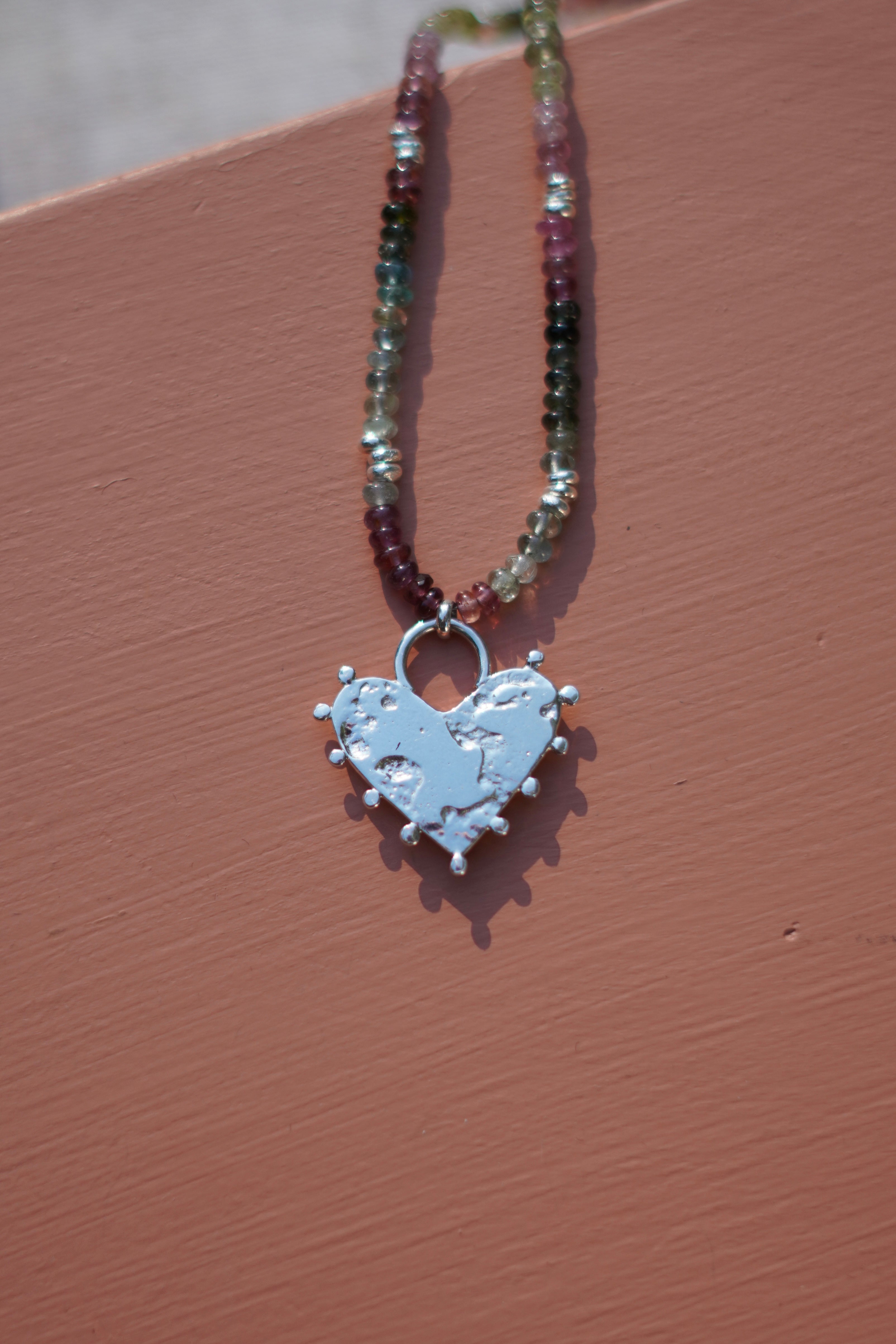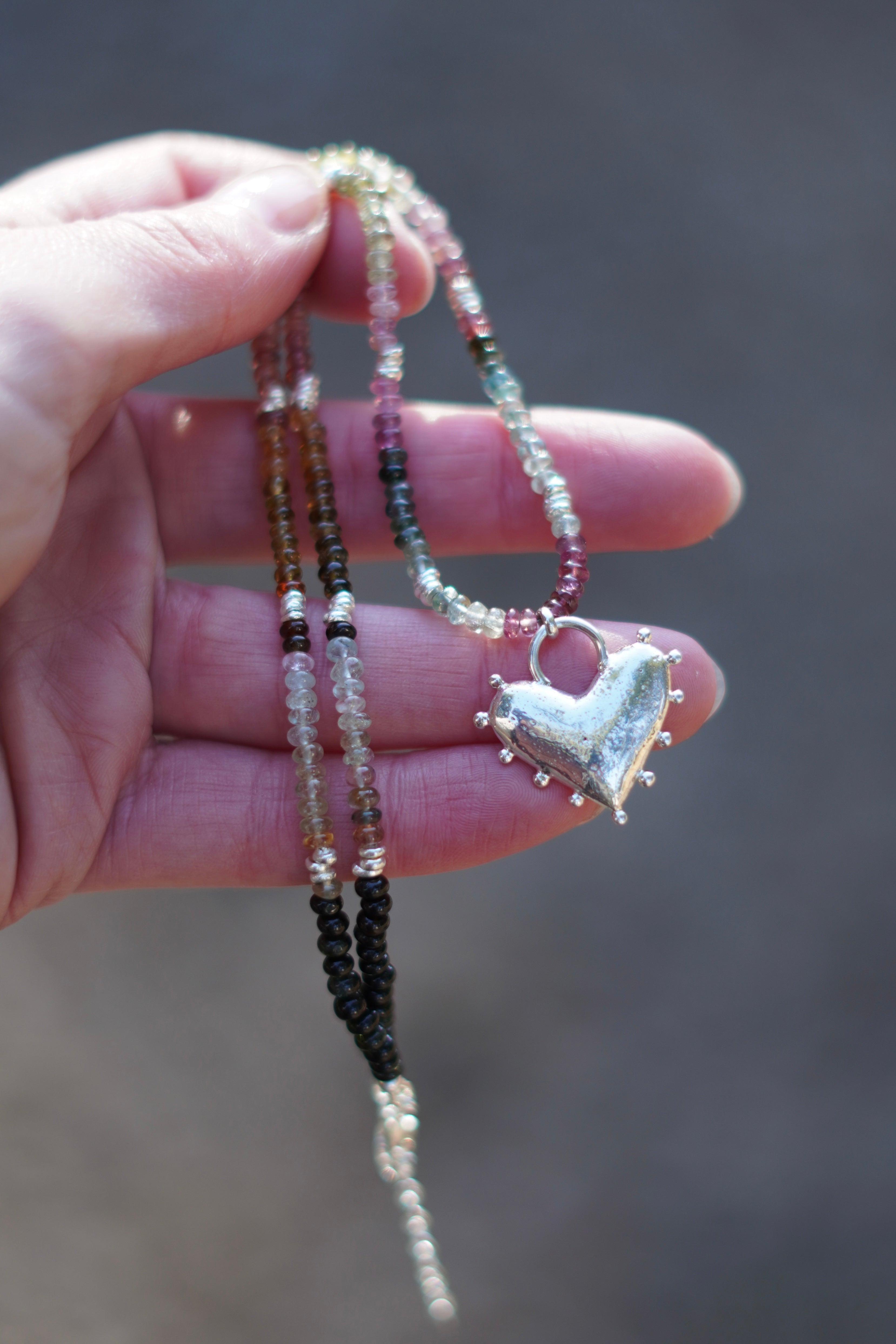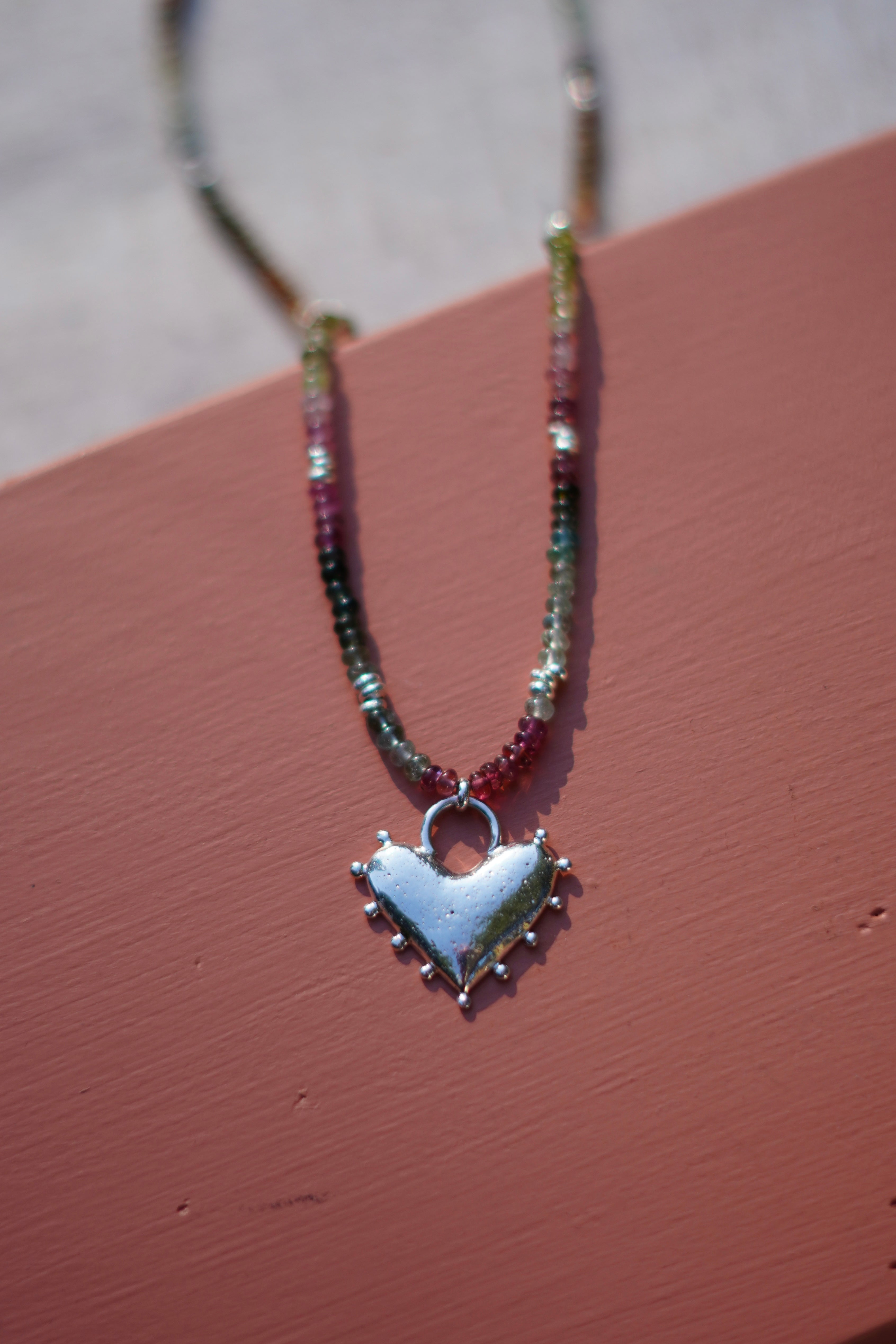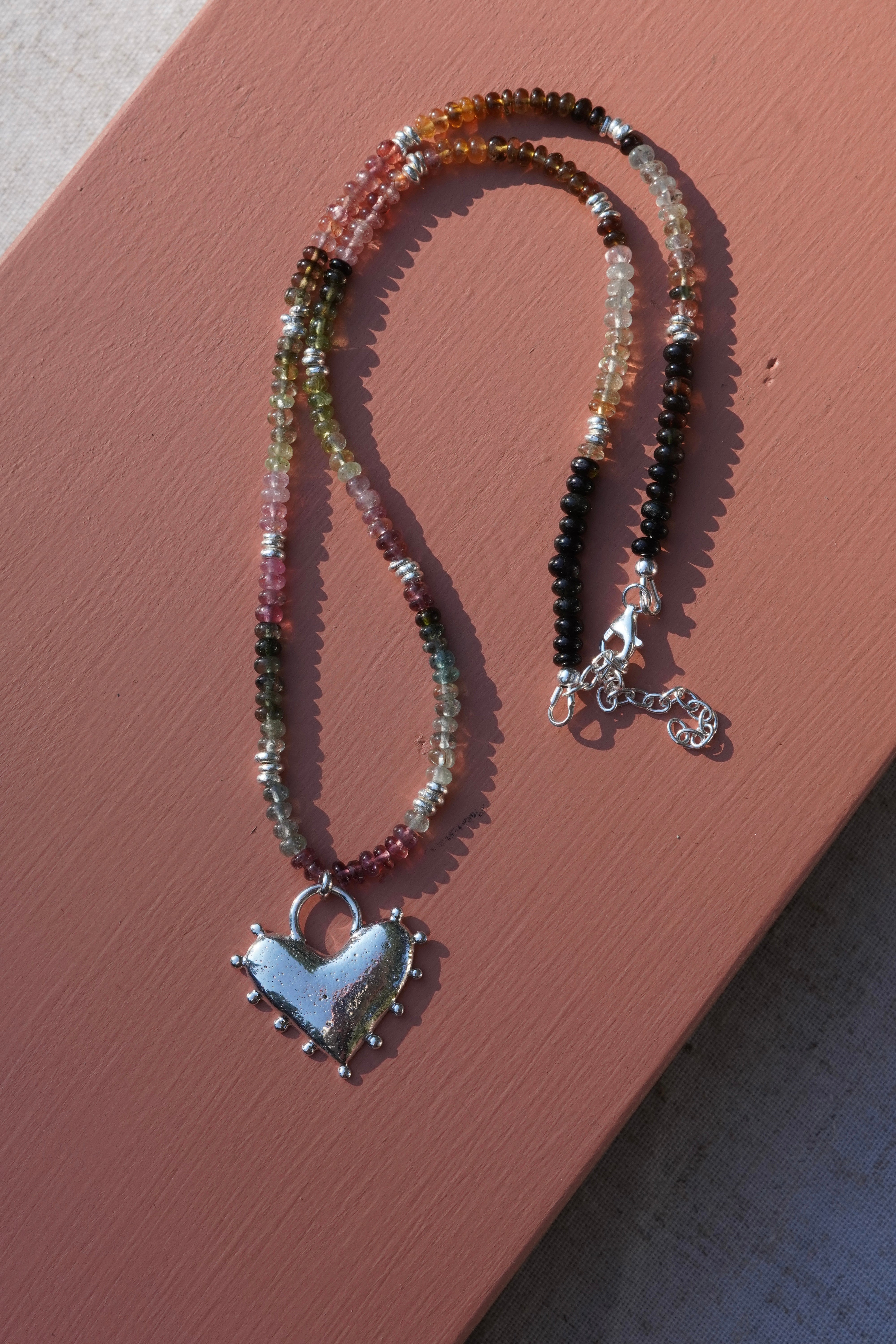 Tourmaline Beaded Necklace with Recycled Silver Heart