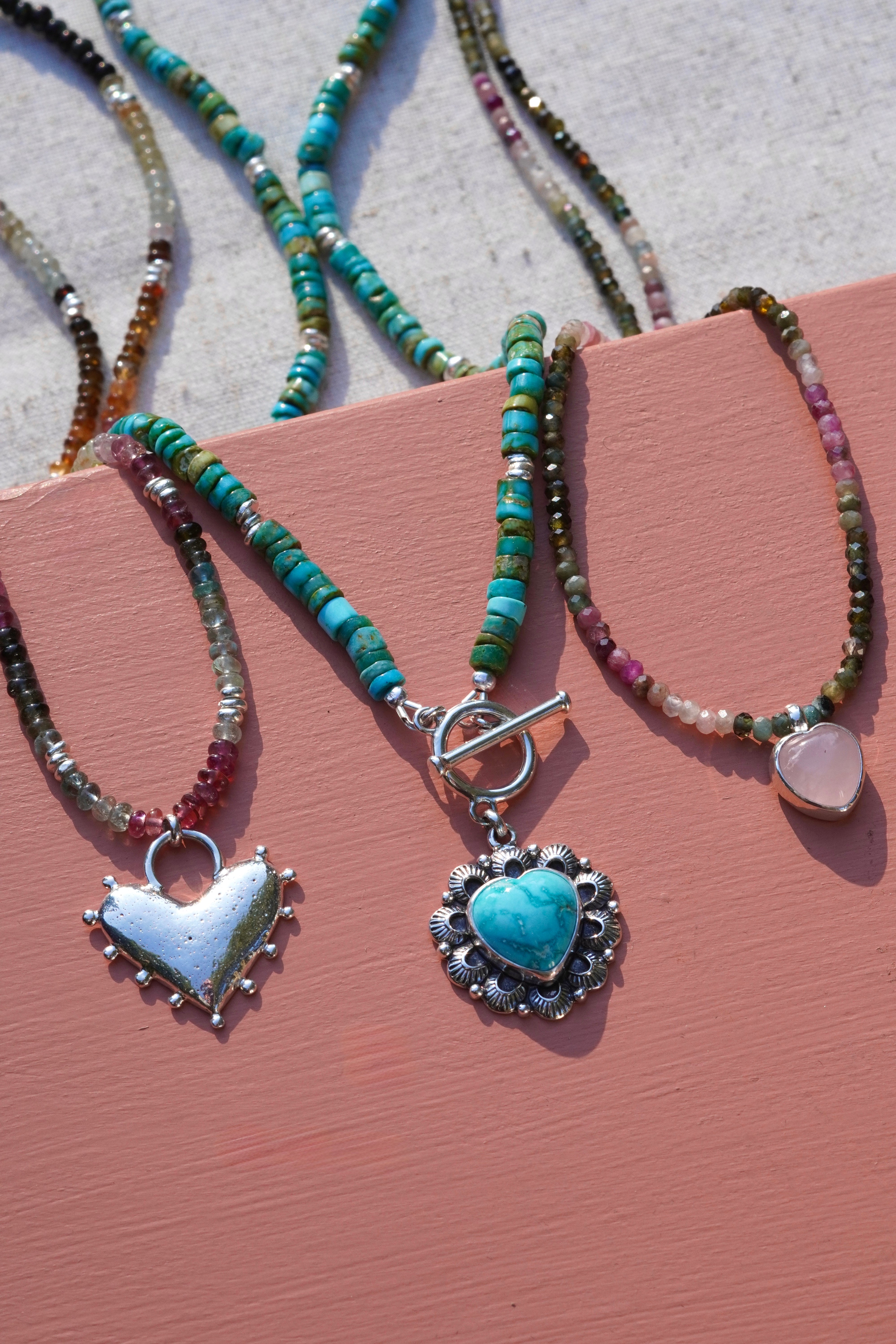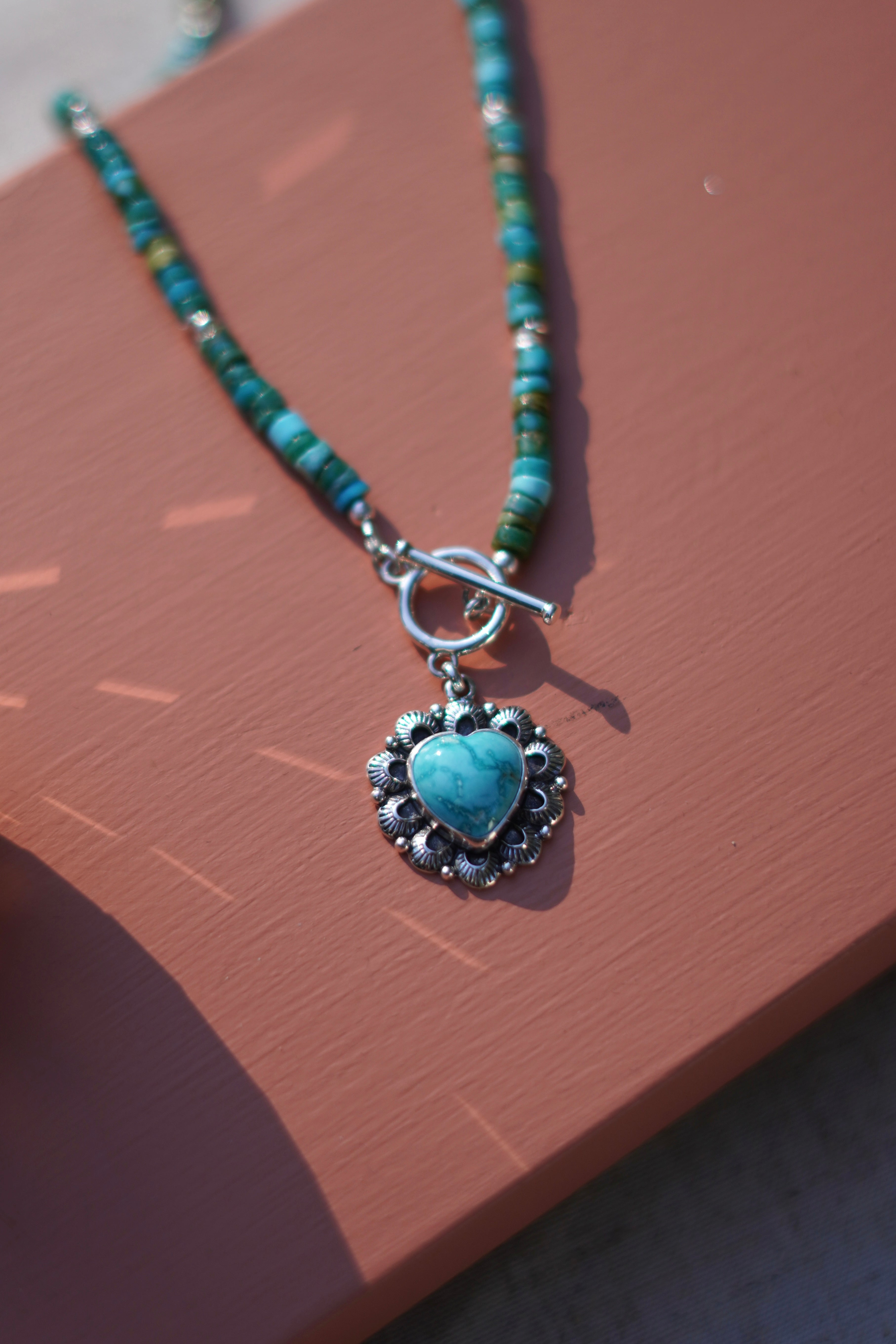 Turquoise Heart Beaded Toggle Clasp Necklace