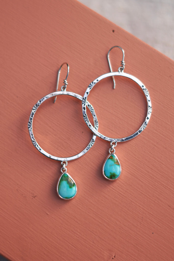 Turquoise Stamped Hoops