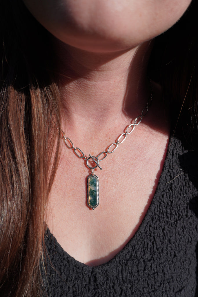 Moss Agate Toggle Clasp Necklace